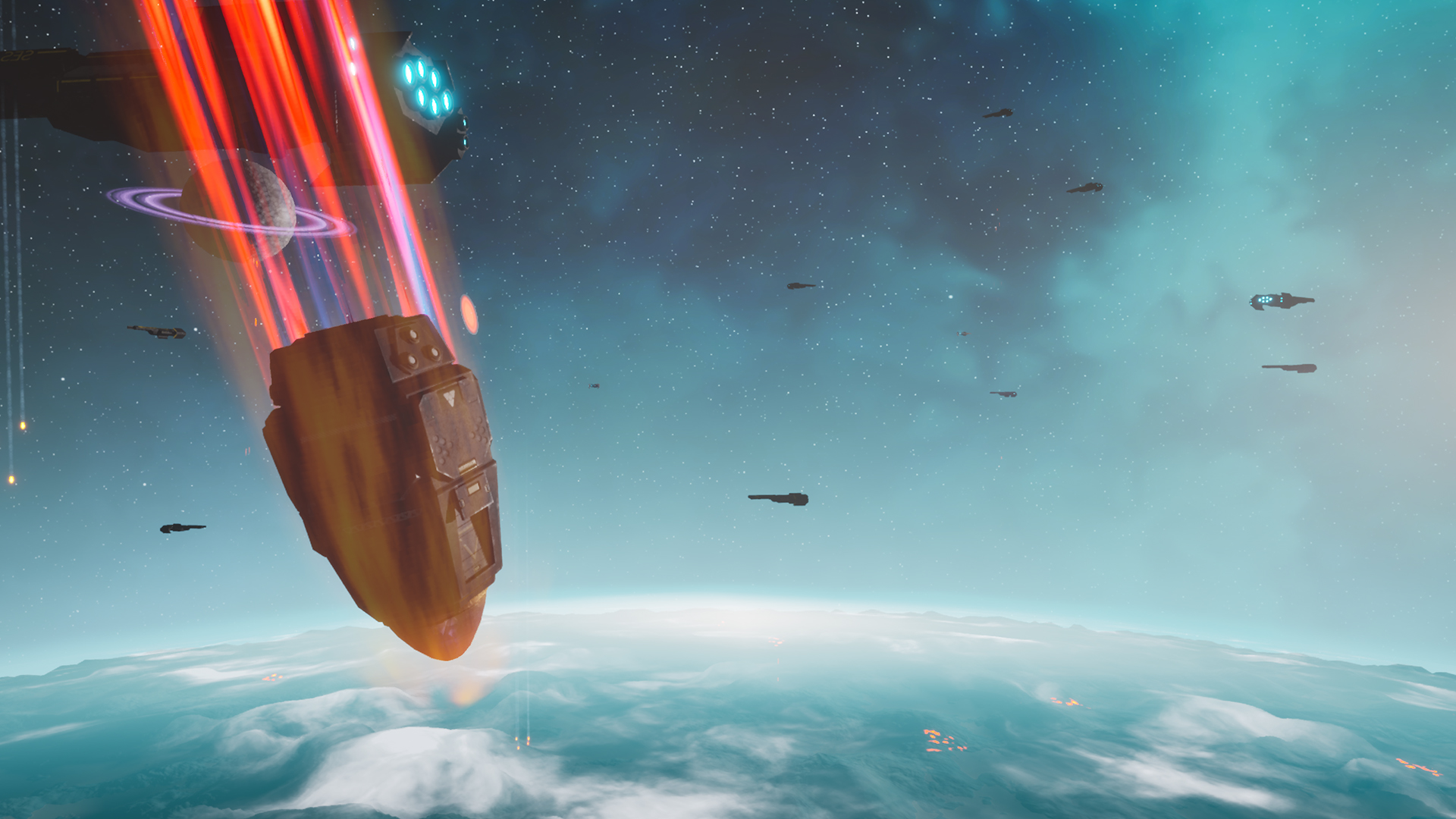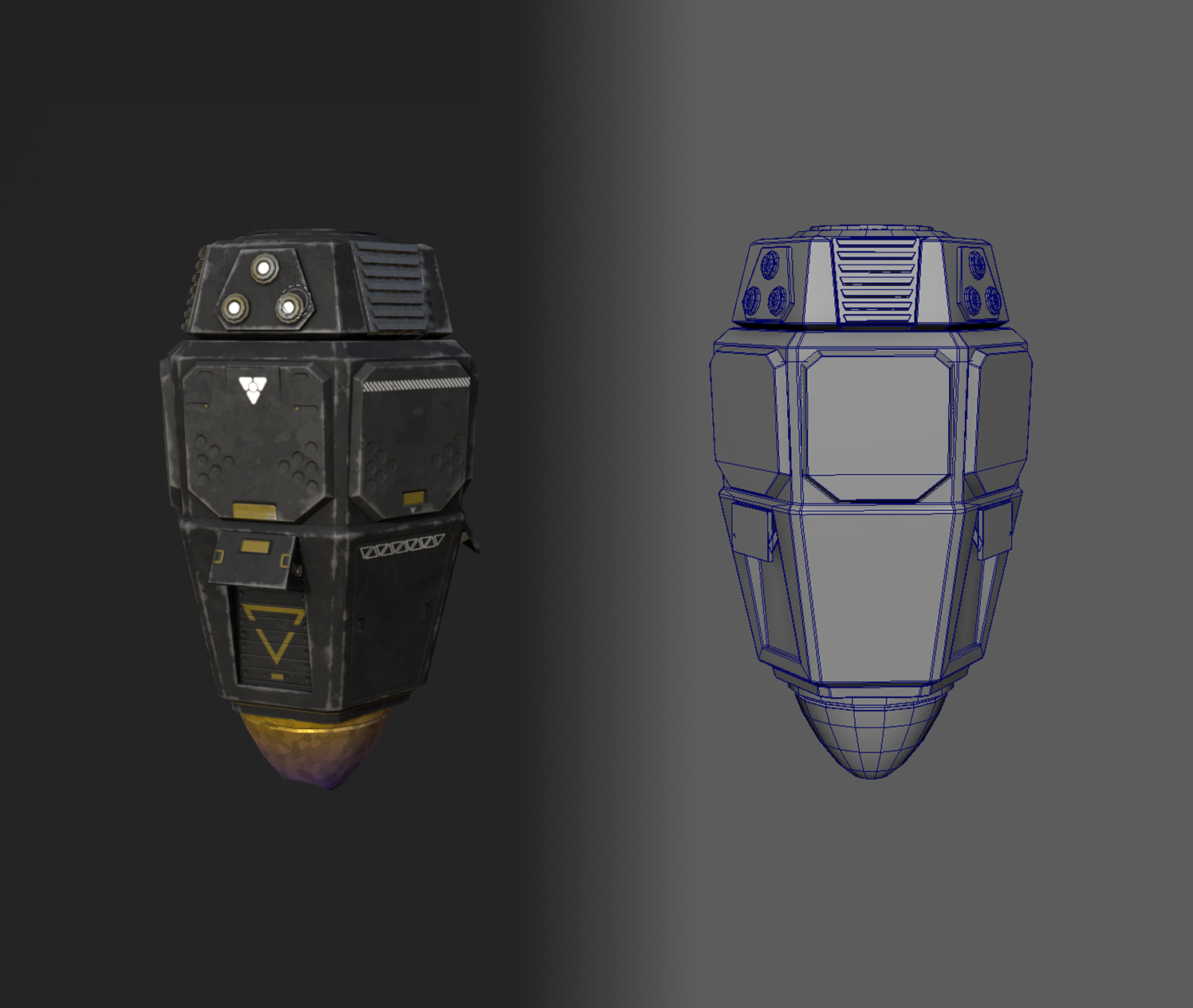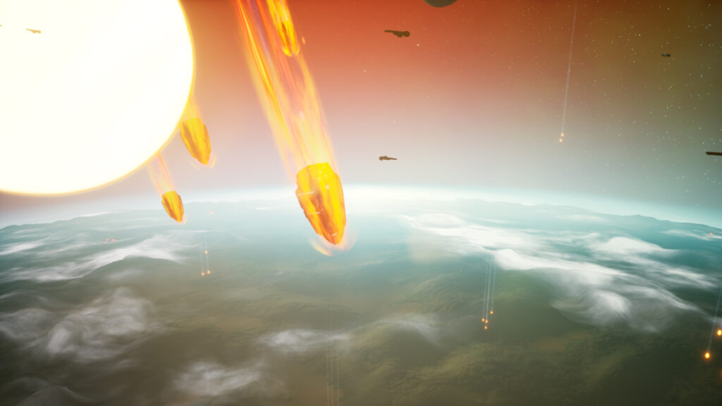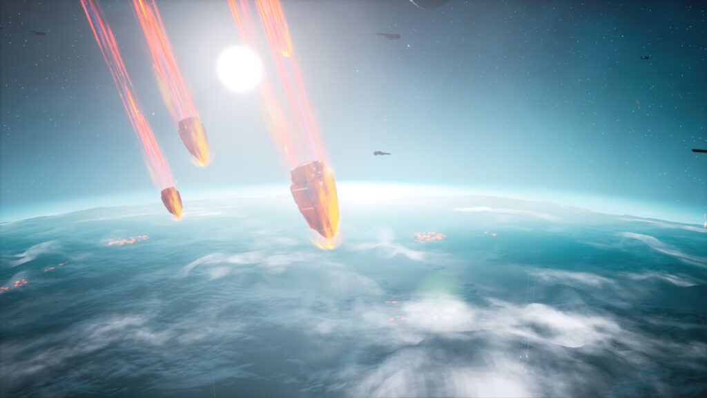 For this project, we aimed to use as little custom geometry as possible and avoided third-party assets. However, the scene could not be created without the iconic Hellpods and Destroyers.